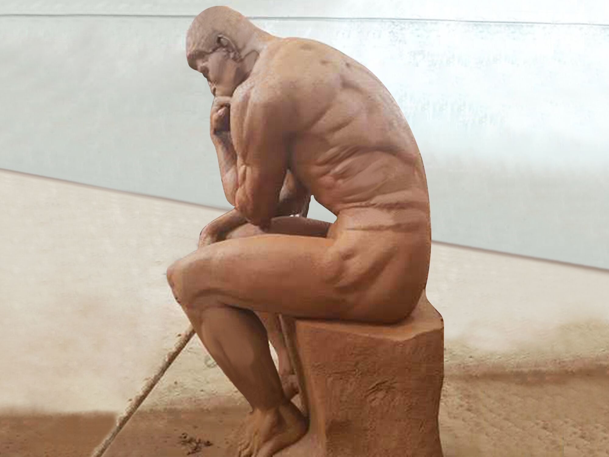 This custom bronze statue of The Thinker captures a figure deep in contemplation, seated with his chin resting on his hand. The detailed muscular form and pensive posture embody intellectual intensity and introspection, making it a powerful symbol of thought and reflection.