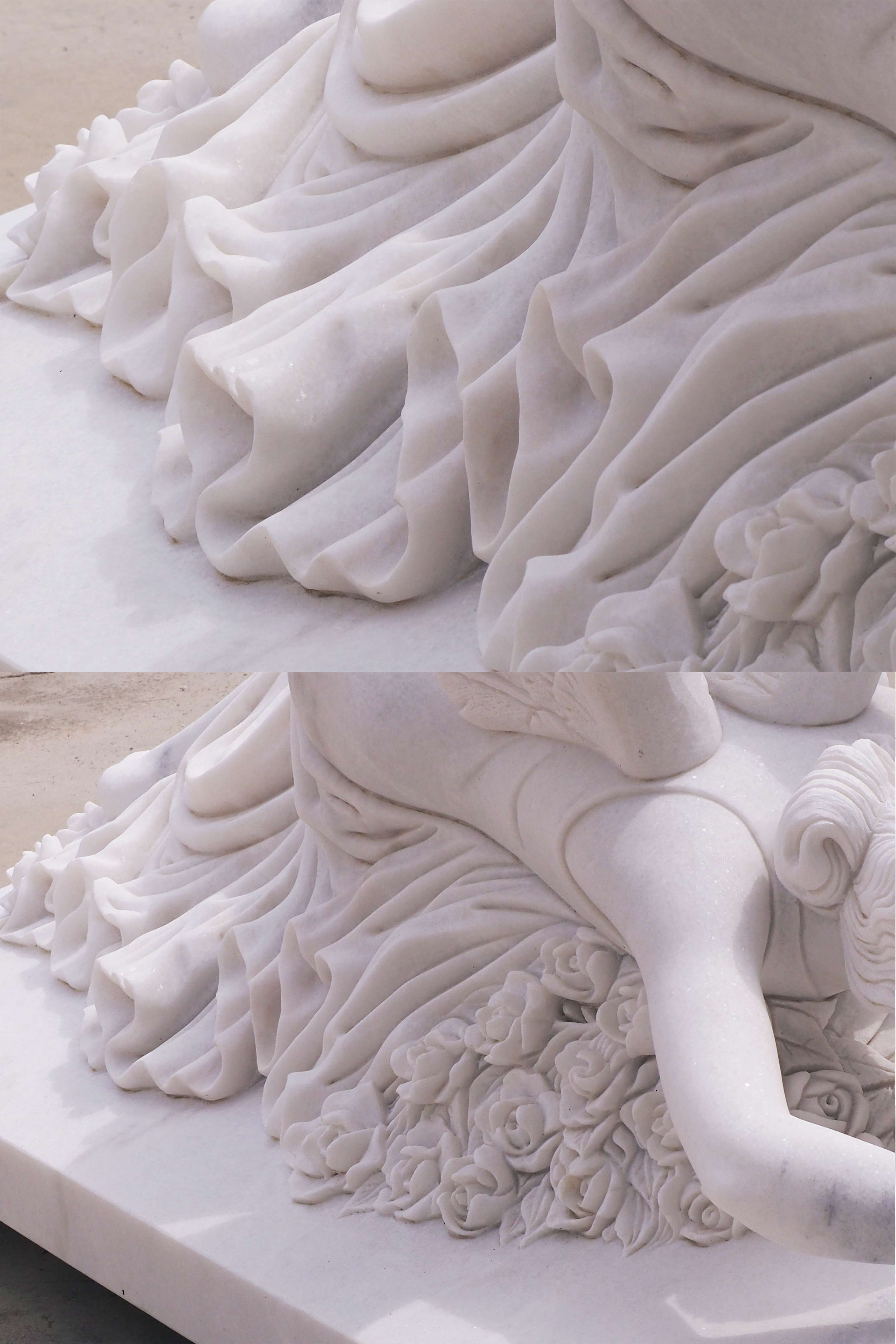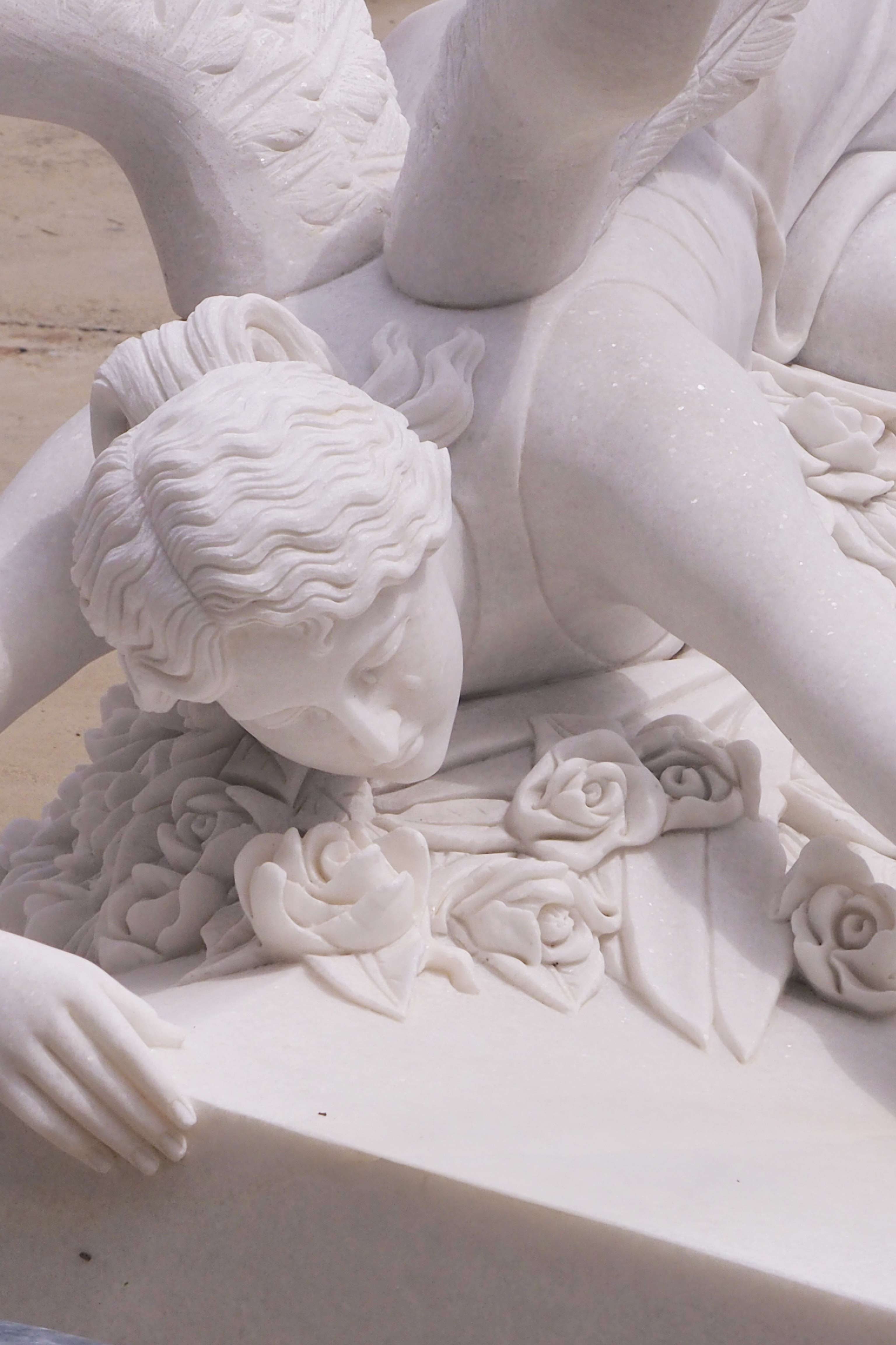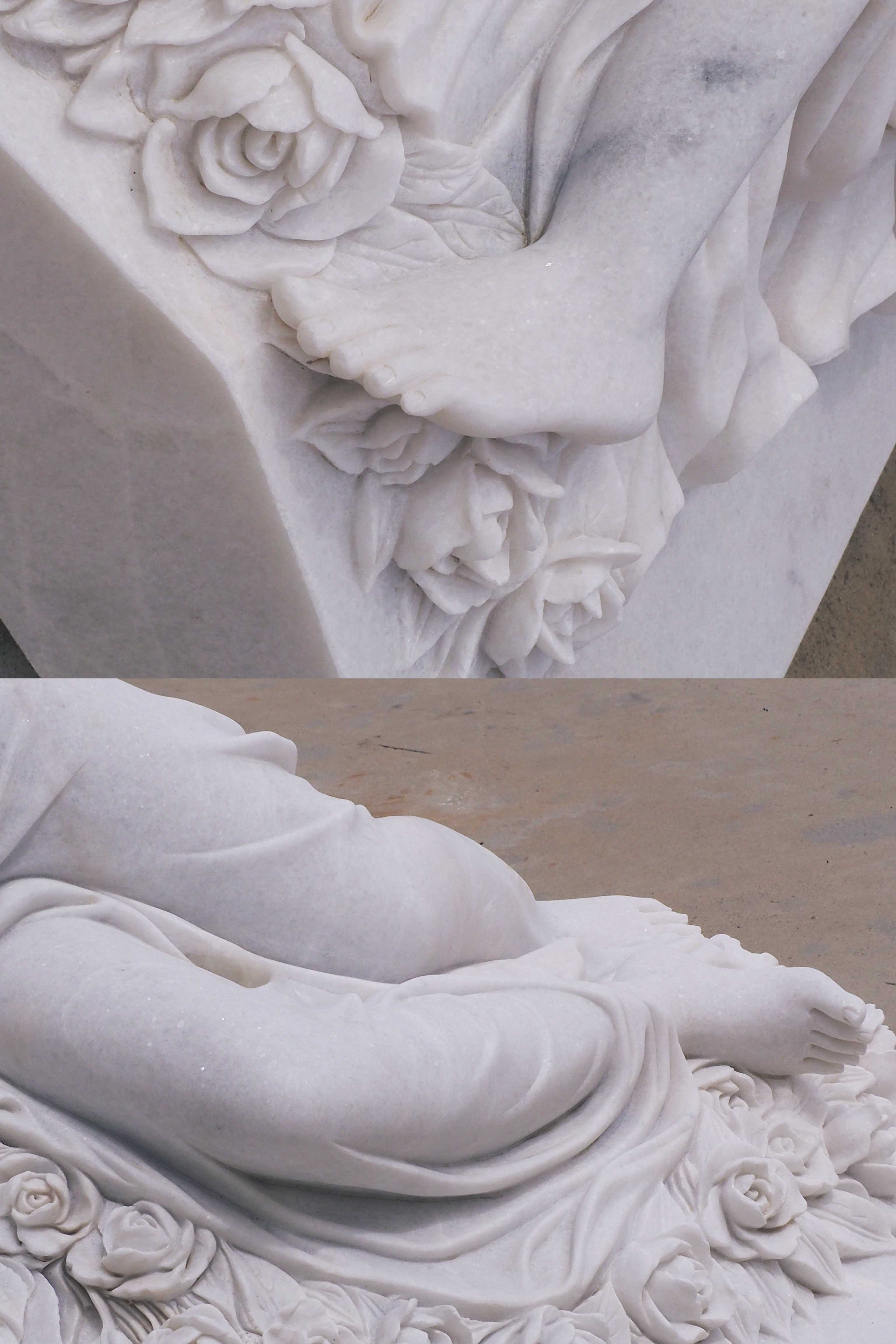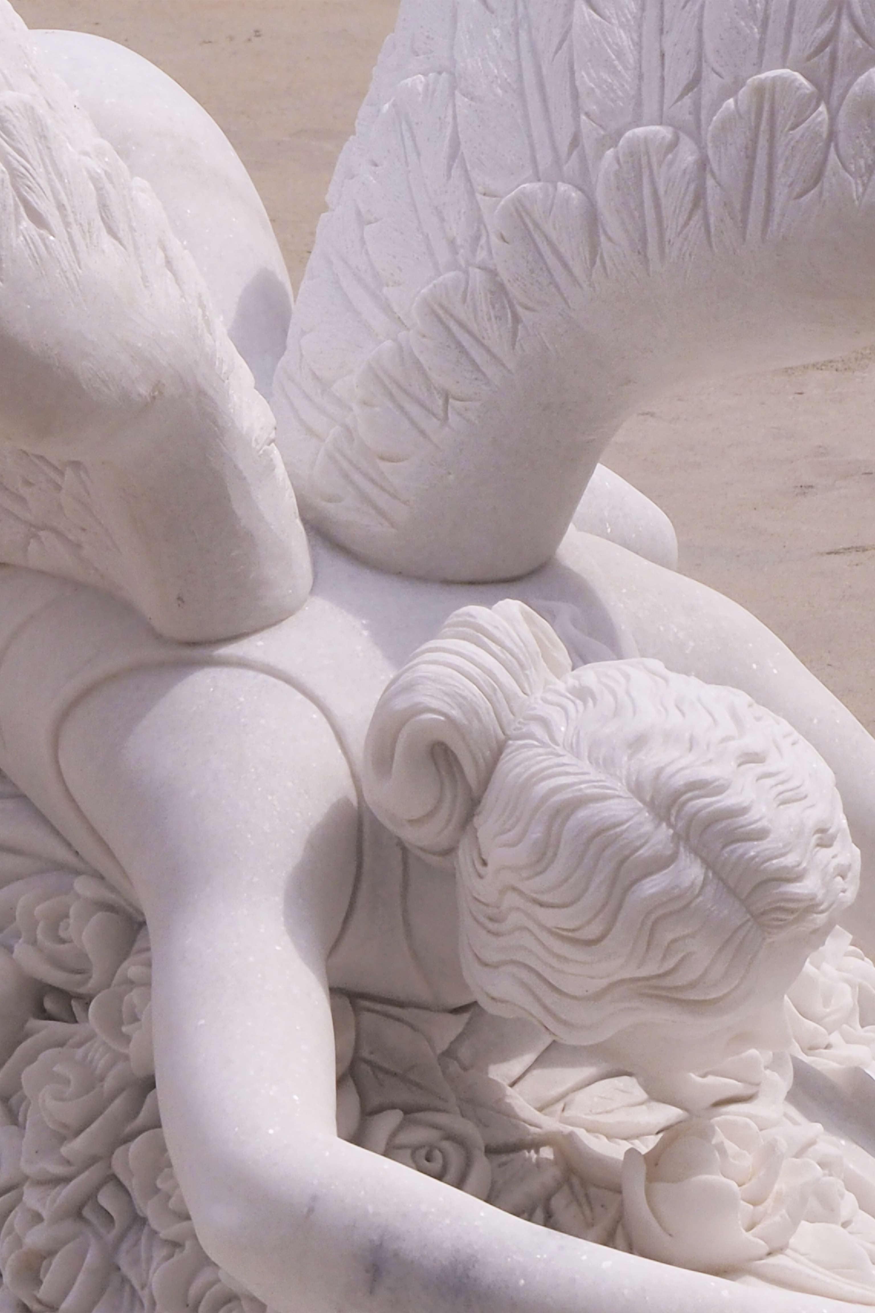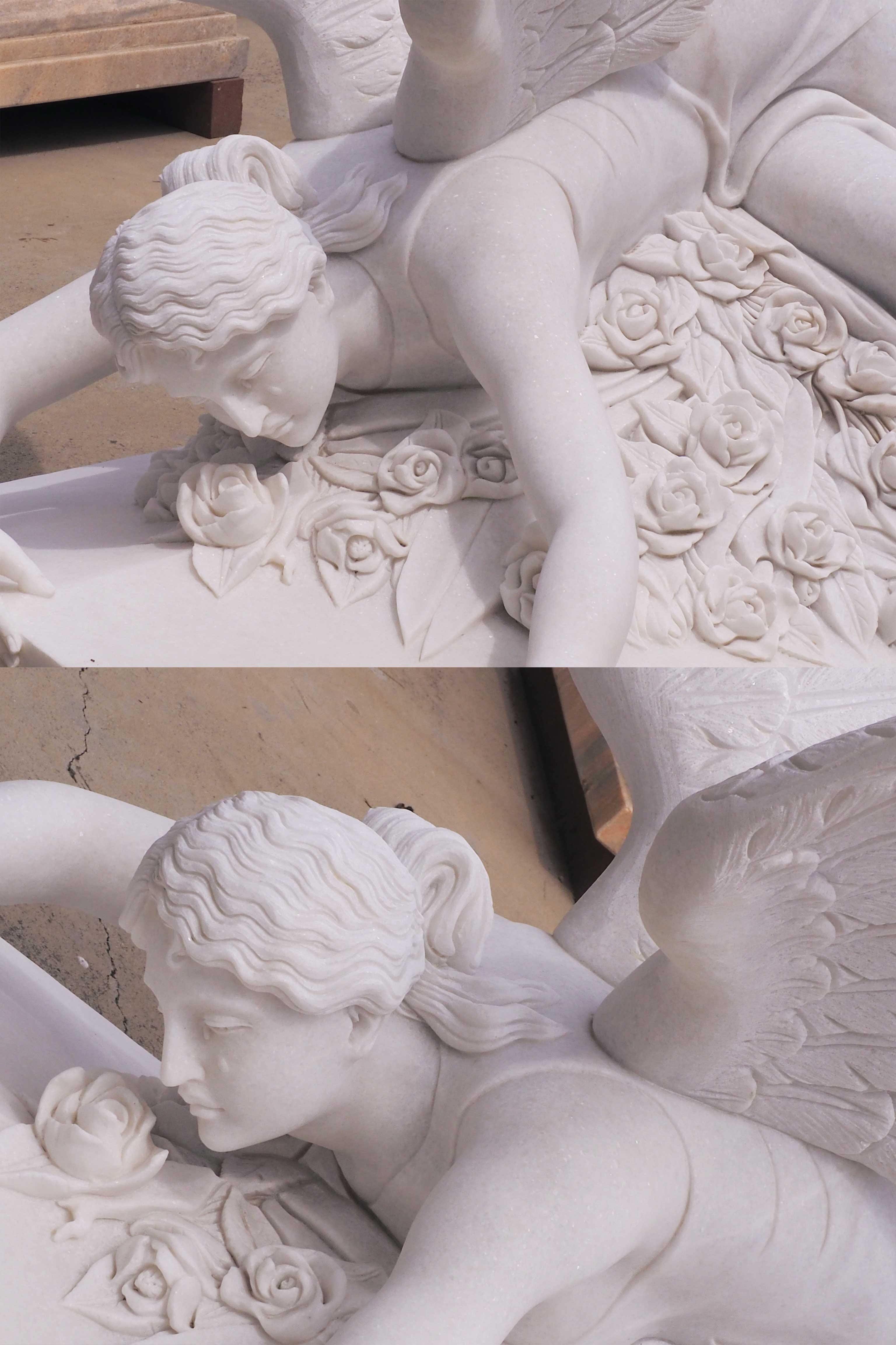 Custom Fallen Angel Embracing Roses Marble Sculpture