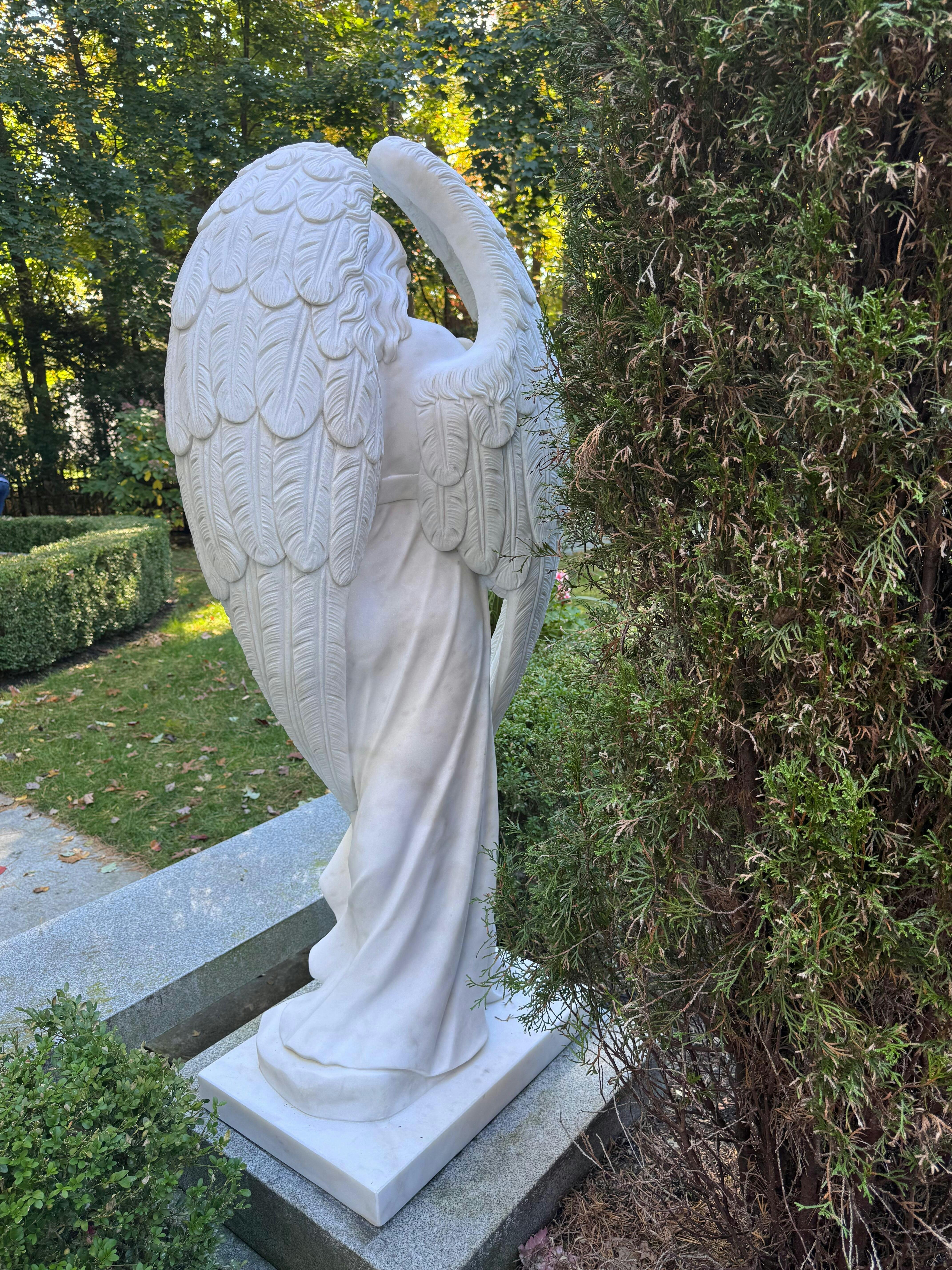 I started out the process of ordering these statues with great skepticism. I did not know this company nor the process of creating the statues. My project manager, Karen, could not have been more helpful or informative. She provided me with all the information assurances I needed I ordered two 60" marble angels for our family cemetery garden in Vermont. Not only are the angels perfect and look exactly like they do in the pictures, I was able to customize them with a butterfly and a dragonfly, which are symbols in my family that are important to us (you can see them in one of the images). Again, I investigated this company very carefully before I put in this order. They have my highest recommendation for quality, communication, and results. The entire process was seamless, and the angels are perfection, Order from this company with great confidence. You will not be disappointed.