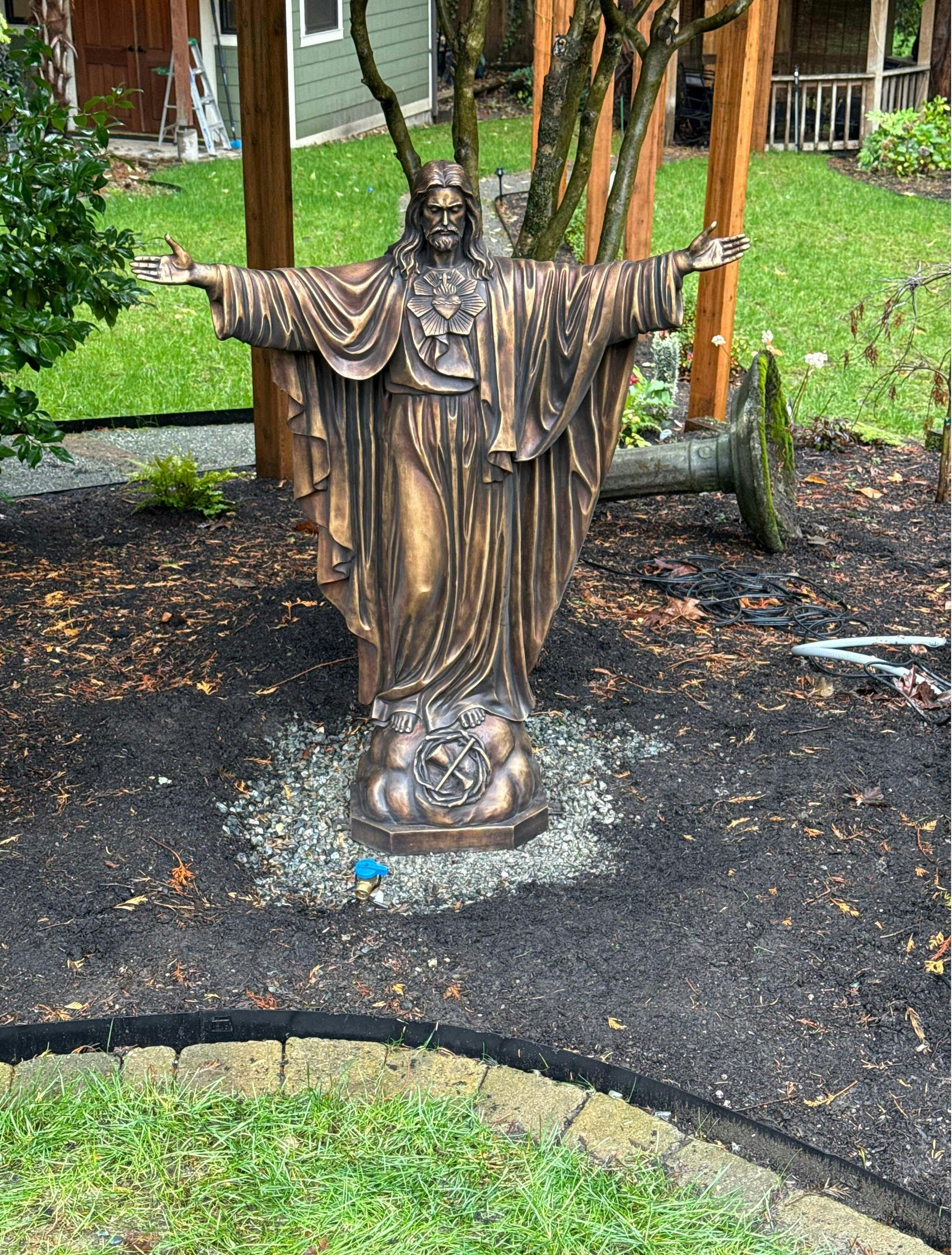 Attached are 2 photos. I still have to finish the landscaping and lighting around the statue. Of course as you can see in the background, I am currently also doing construction to my house.